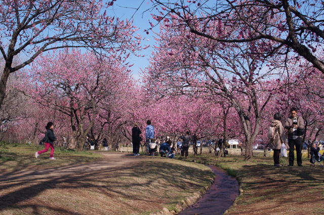 まつり会場の古河総合公園には、なんと5種類の花桃が約1,500本も植えられています。