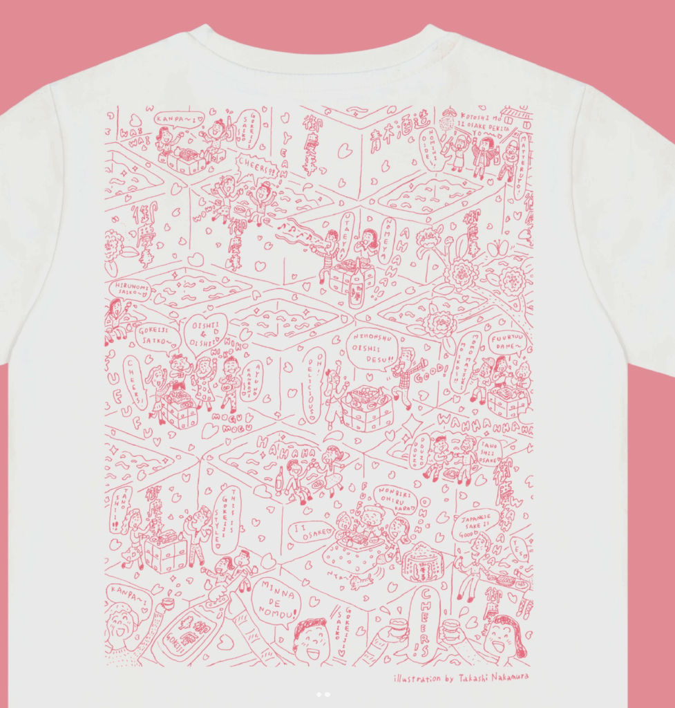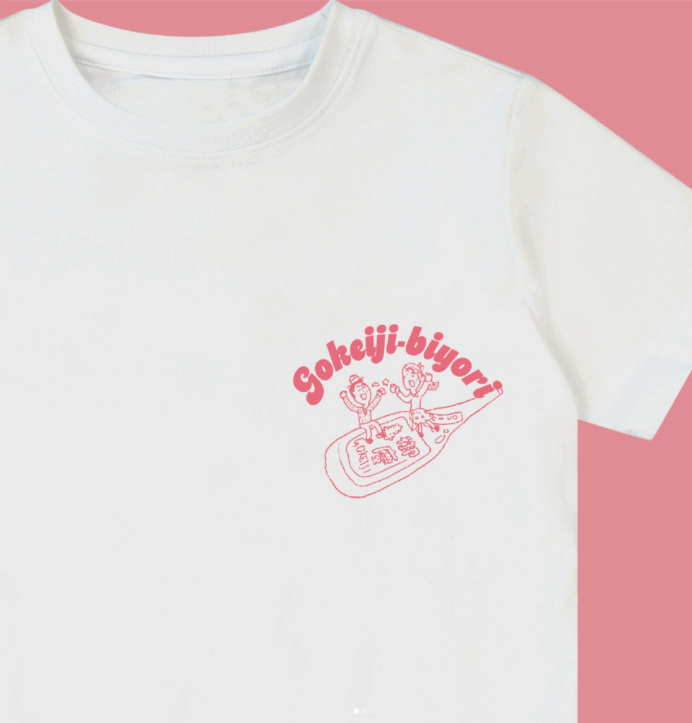 こちらもステッカー同様、イベントのメインビジュアル(by イラストレーター中村隆さん)を模したデザイン。胸にワンポイント、背中に大きなバックプリント。『御慶事日和』らしい、わちゃわちゃ感が楽しいTシャツです♪😊